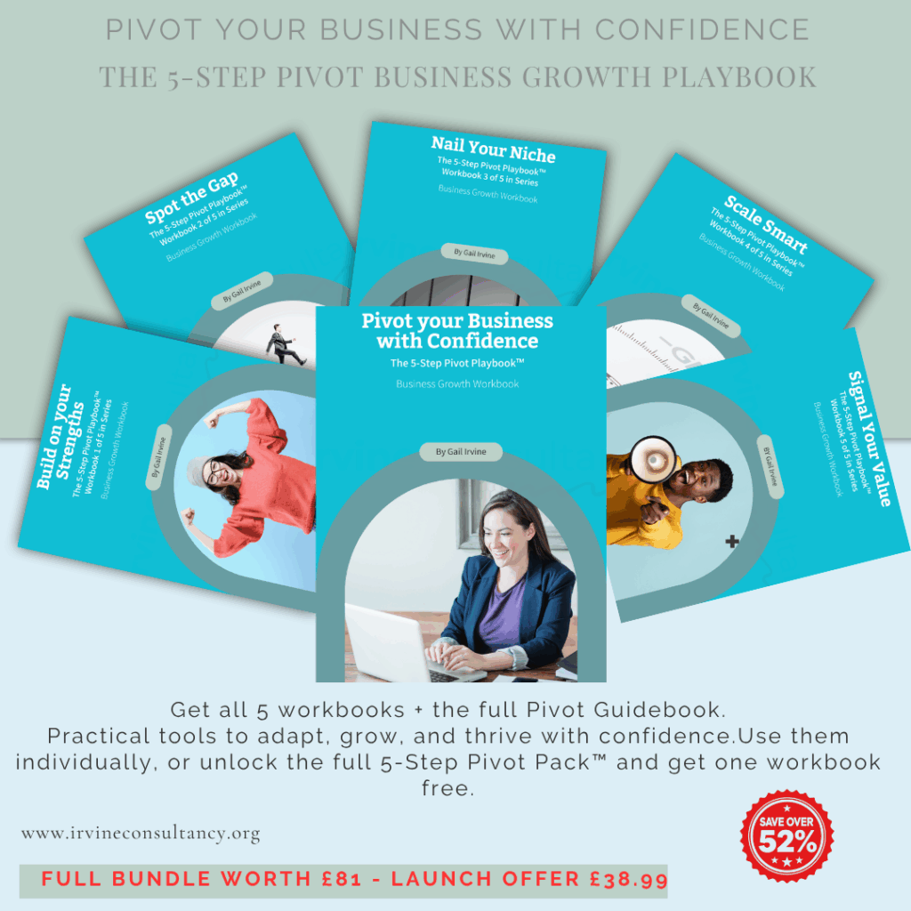 ‘The Pivot Pack helped me step back and see my business clearly for the first time in years. I realised I’d been spreading myself too thin, the ‘Nail Your Niche’ workbook showed me exactly who I should be targeting. Within two months, I’d secured three new contracts and felt confident about my growth plan.”